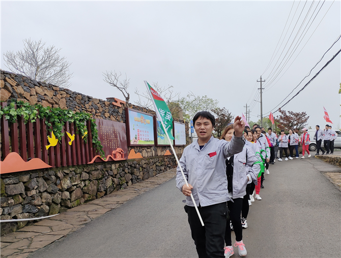 此次活動(dòng), 在注塑車間主管臧周峰的帶領(lǐng)下,來到許家山,所有隊(duì)員分成6組,列隊(duì)前往活動(dòng)地點(diǎn)。
